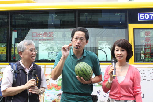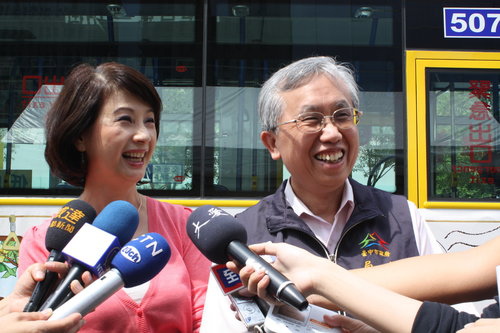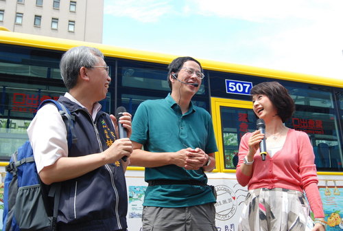 文化局今(20)日舉行「公車賞詩文:八公里路詩和閱」活動記者會,文化局長葉樹姍、交通局長林良泰報手持大型公車鑰匙,象徵幸福詩路正式啟程。