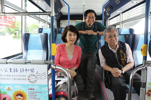 葉局長表示,感謝交通局的支持,讓民眾在臺中市坐公車時,除了欣賞風景、藉機休息外之外,還可以欣賞到詩文,透過詩作豐富每一段旅途,享受詩文的幸福。