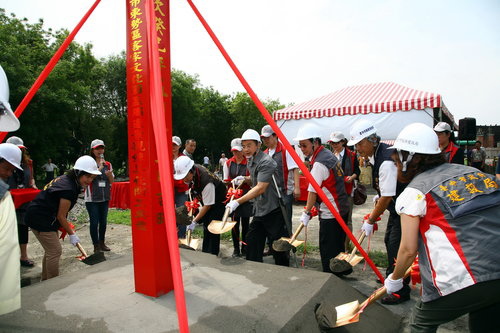 出席動土典禮的人還有建設局長沐桂新、東勢區長葉玉錦等,祈求工程平安順利,東勢客家文化園區前身為東勢區舊火車站,早期以運送大雪山木材為主,後來鐵路停駛荒廢改建為客家文化園區。
