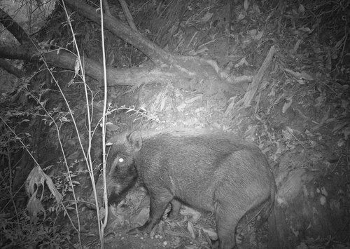 造成此次觀霧山椒魚試驗棲地表土破壞的臺灣野豬別名山豬,是臺灣的特有亞種,適應力極強,普遍分布在全島山區,從低海拔到 三千公尺 以上的高山都有牠們的活動痕跡,森林、草叢、竹林與田野地都是牠們活動的場所。山豬屬夜行性動物,通常於傍晚或夜間出沒,較少於白天活動,對遊客影響較小。牠們為雜食性的動物,食物種類非常廣泛,包括昆蟲、蚯蚓、植物的根與嫩葉,尤其擅長挖掘樹根,經常造成大面積的表土翻動。